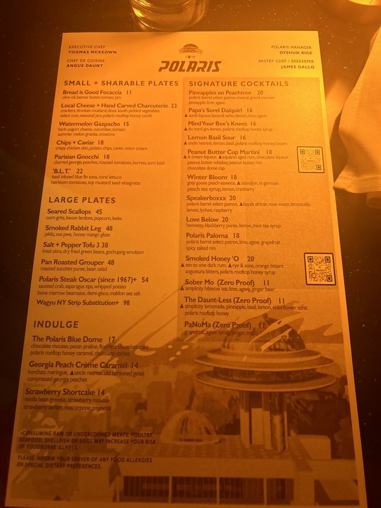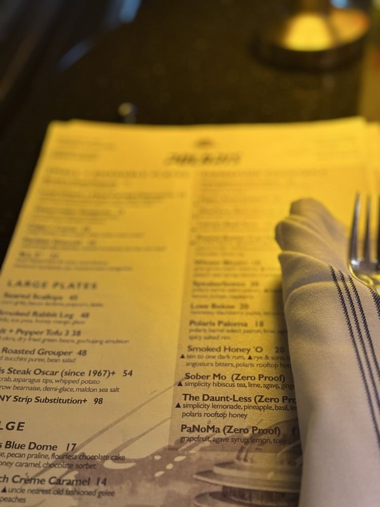 Highlights of the menu include the renowned Polaris Steak Oscar, sautéed with crab and bone marrow béarnaise, which has garnered rave reviews for its rich flavors. Guests also delight in the Parisian Gnocchi, featuring charred Georgia peaches and creamy burrata, leaving taste buds craving more.